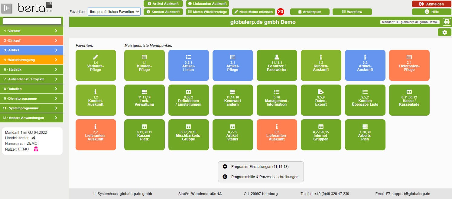 Hersteller des Warenwirtschaftssystems Berta Plus für Import, Export, Großhandel und Produktion. Mit Schnittstellen zu Lohn-, Projektabrechnungssystemen, Finanzbuchhaltung und Zugangskontrolle. Individuelle Anpassung an die betrieblichen Bed&uu